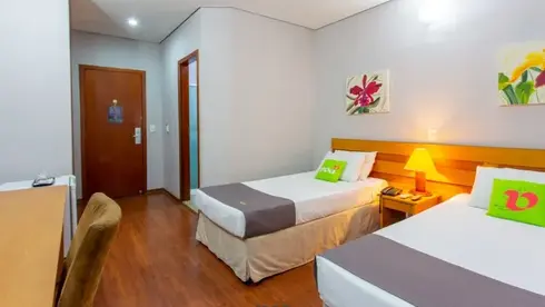 No VOA San José Palace Hotel, cada uma das 87 acomodações oferece o máximo em conforto e conveniência para os hóspedes. Equipadas com banheiro privativo, ar condicionado, frigobar, guarda-roupa, mesa de trabalho, telefone e Wi-Fi, nossas acomodações garantem uma estadia verdadeiramente agradável. Pensando na sua comodidade, as tomadas estão estrategicamente localizadas próximas às camas, e nosso serviço de limpeza é realizado diariamente para manter tudo impecável. Além disso, nossa recepção está sempre disponível, 24 horas por dia, para atender às suas necessidades a qualquer momento. No VOA San José Palace Hotel, estamos comprometidos em tornar sua estadia em Osasco inesquecível.